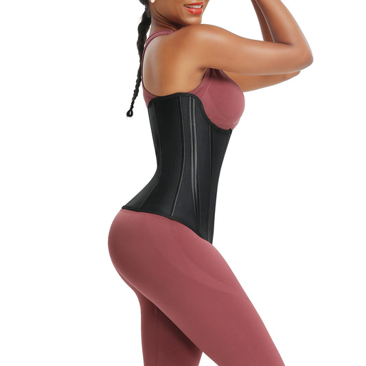 Black Latex Tummy Control Waist Trainer 14 Steel Bones Lose Weight